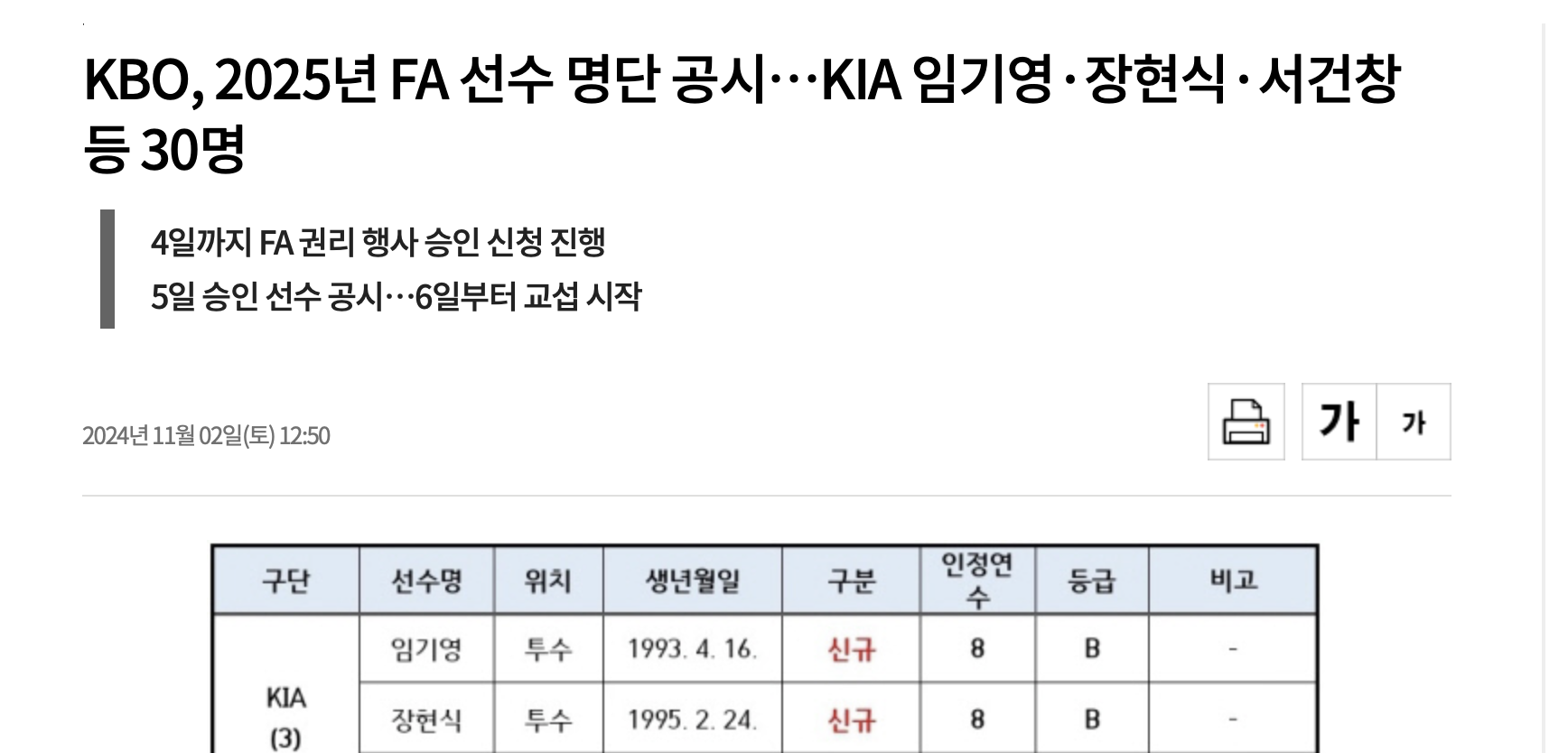 2025 KBO FA 자격 선수 개요